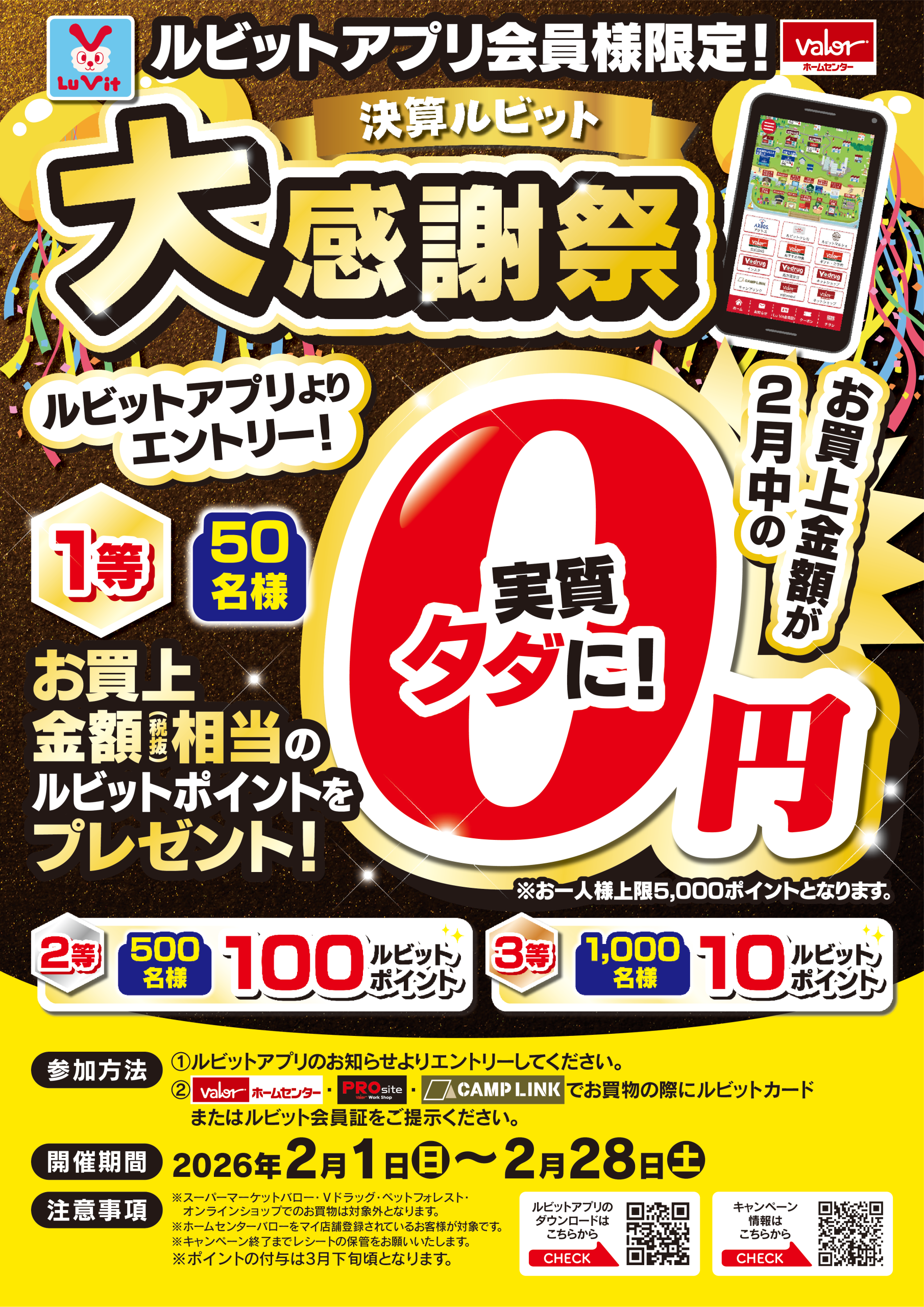 2026年2月1日(日)~2月28日(土)の期間中にホームセンターバロー・プロサイト・キャンプリンクで