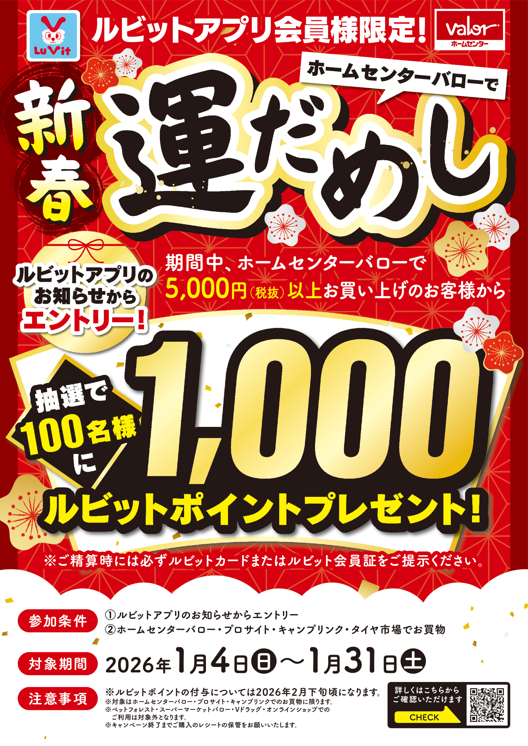 【ルビットアプリ会員様限定】〈ホームセンターバロー〉で新春運だめし