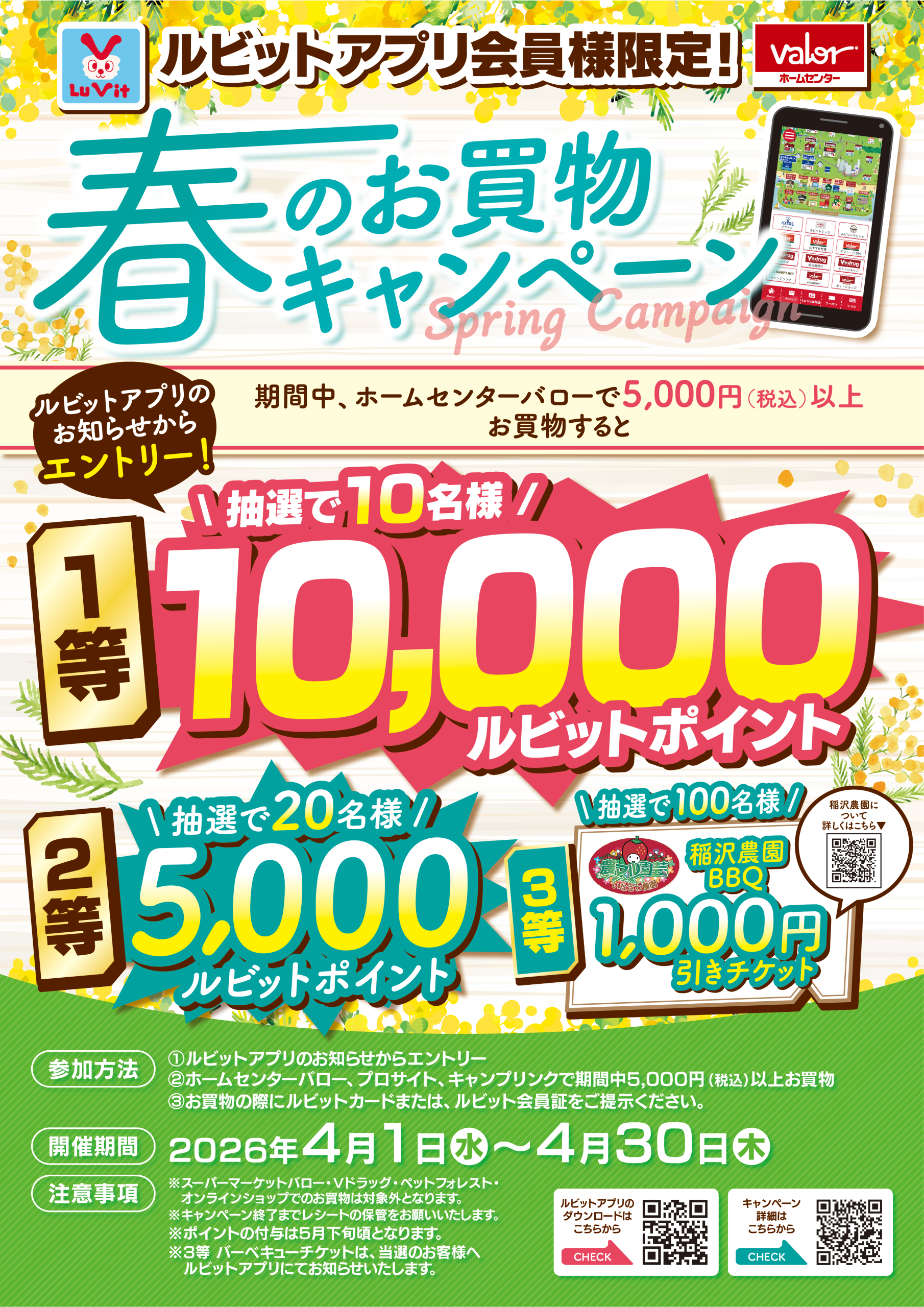 【ルビットアプリ会員様限定】ホームセンターバロー春のお買物キャンペーン