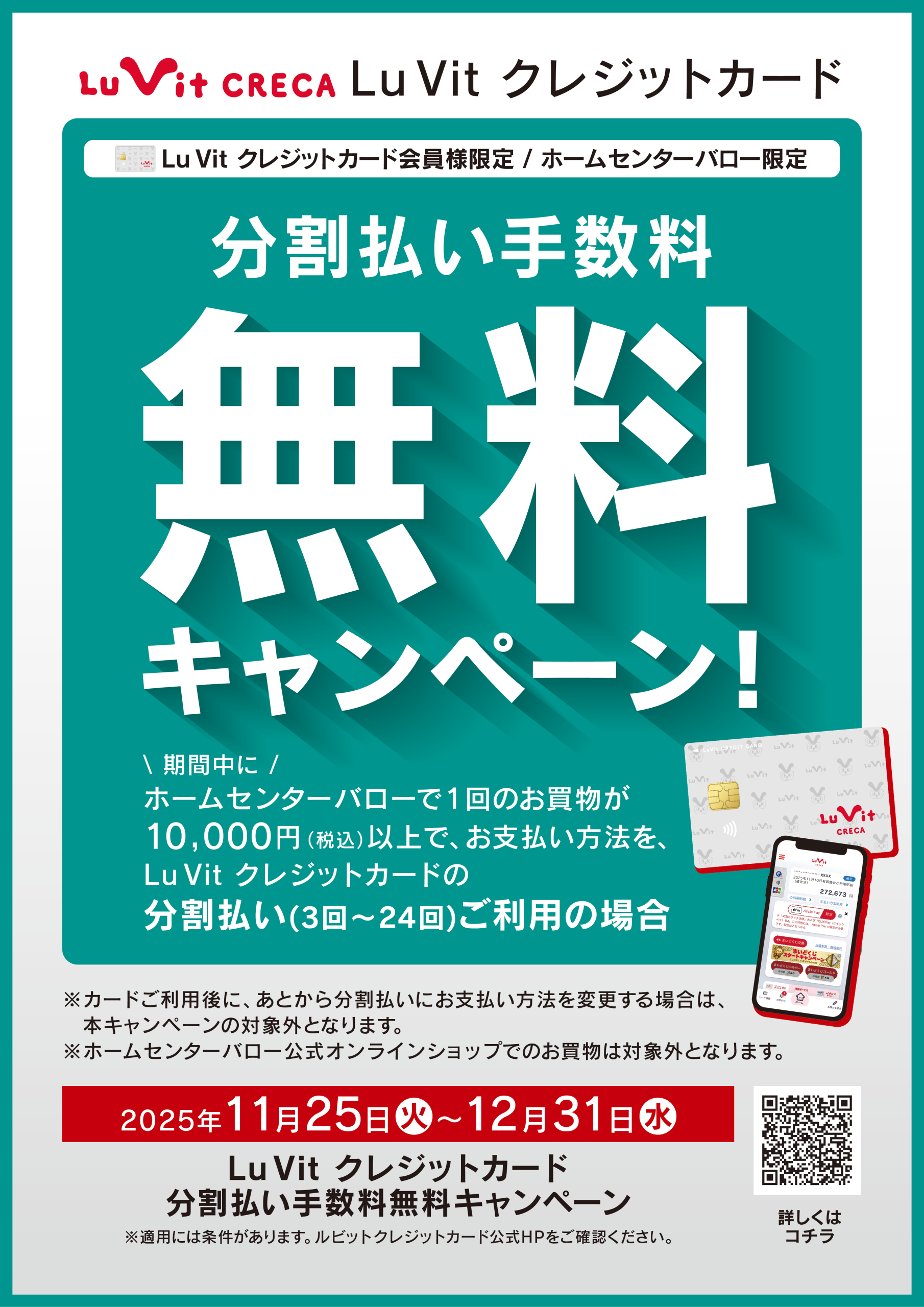 【ルビットクレジットカード会員様限定】分割払い手数料無料キャンペーン!