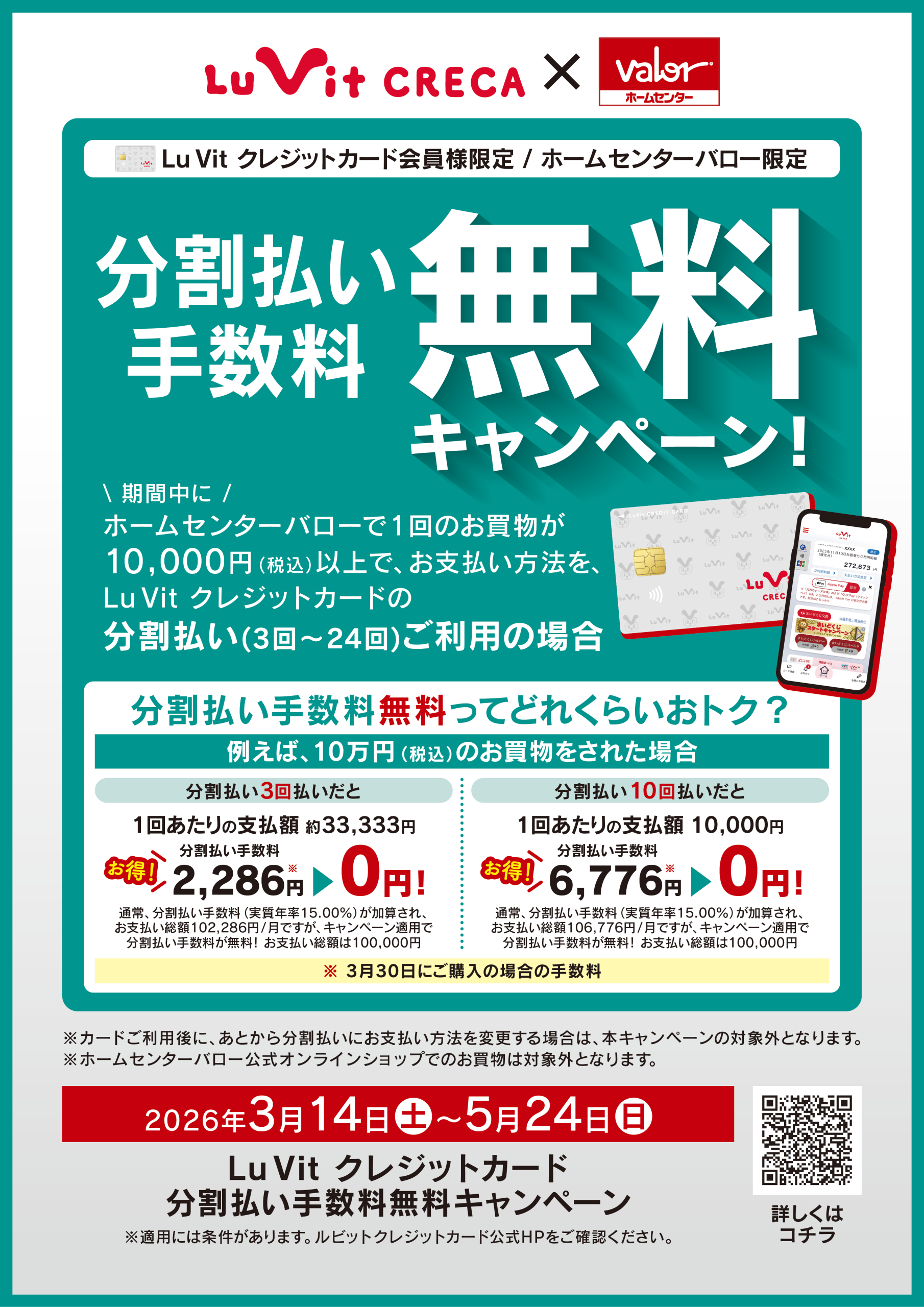 - 取消・返品のタイミングやホームセンターバローからのご利用明細情報の到着時期によっては、分割金利0%が適用されない場合があります。