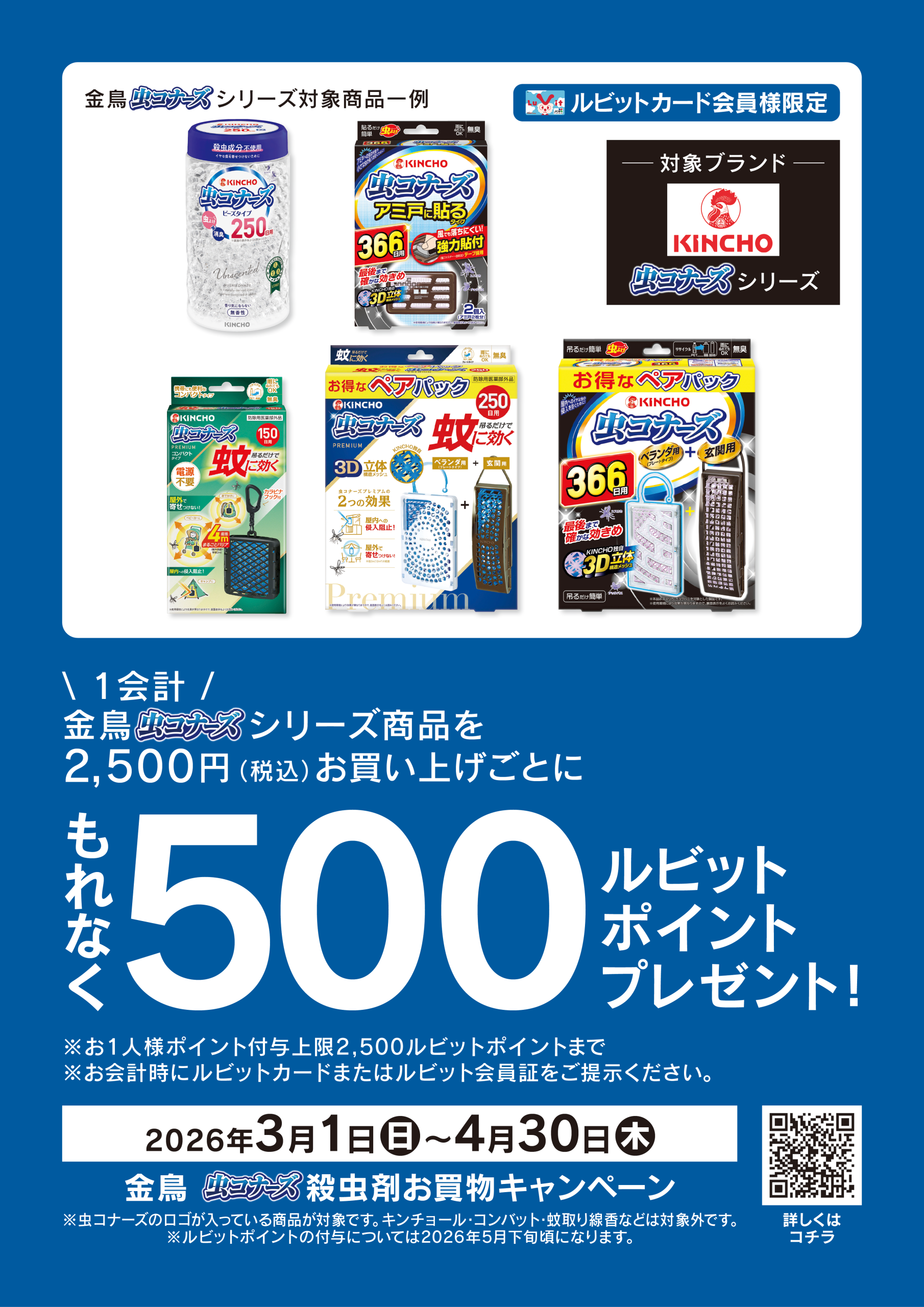 【ルビットカード会員様限定】金鳥 虫コナーズ殺虫剤お買物キャンペーン!