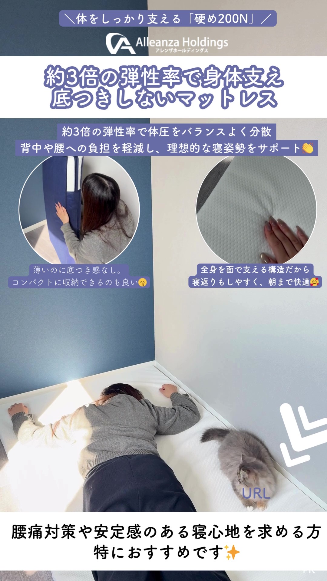 厚さ3cmとスリムなのに「硬め200N」でしっかり支えてくれるにゃ👏🏻