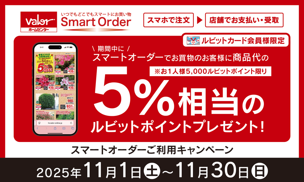 ◆ ルビットカード会員様限定 ◆ 2025年11月1日(土)~11月30日(日)の期間中にスマートオーダーでお買物のお客様に 商品代の5%相当のルビットポイントプレゼント! ※お1人... -