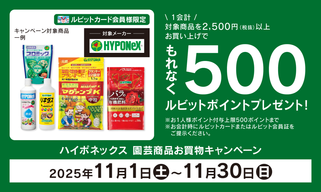 【ルビットカード会員様限定】ハイポネックス 園芸商品お買物キャンペーン!
