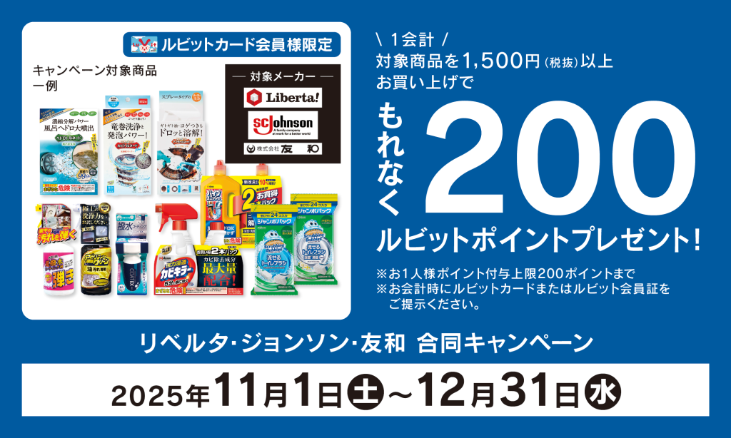 【ルビットカード会員様限定】リベルタ・ジョンソン・友和 合同キャンペーン!